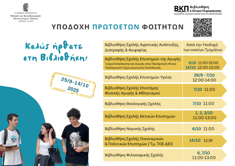 Την Τρίτη 14/10/25 στις 12:30 μ.μ. υποδεχόμαστε τους πρωτοετείς φοιτητές του τμήματος Οικονομικών Επιστημών για μια σύντομη ξενάγηση στη βιβλιοθήκη τους που βρίσκεται στην οδό Ναυαρίνου 13Α, στον 2ο όροφο.